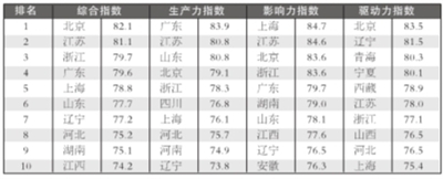 “中国省市文化产业发展指数(2014)”显示,在综合指数领域,北京、江苏、浙江排在前三位;广东、江苏、山东排在生产力指数前三名;上海、江苏、北京则占据影响力指数三甲;北京、辽宁、青海占据了驱动力指数前三名。根据该指数,我国区域文化产业综合发展格局基本未变。各省市综合指数排序与去年相比有小幅变动,河北、湖南、江西挤进全国前十名。在驱动力指数方面,排名前十的省市中,有近一半出自中西部地区。由此可见,在政府的高度重视与支持下,中西部地区的文化产业发展环境迅速优化,发展潜力大。(详见表1)