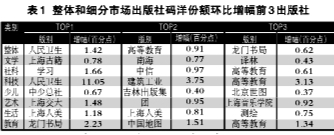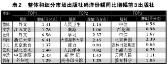 出版社份额同比增减变化点析:外文社、人民卫生社和中信社同比增幅三甲