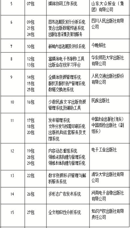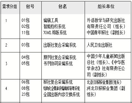 国家数字复合出版系统工程应用试点单位需求分组及组长单位名单