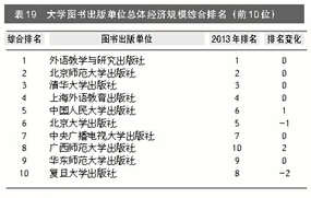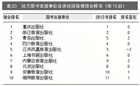 以2014年12月31日收盘价计算,31家出版发行和印刷上市公司股市流通市值合计2601.8亿元,较2013年同期增加860.9亿元,增长49.5%;前10位降序依次为中南出版传媒集团股份有限公司、北京康得新复合材料股份有限公司、江苏凤凰出版传媒股份有限公司、浙报传媒集团股份有限公司、中文天地出版传媒股份有限公司、华闻传媒投资集团股份有限公司、安徽新华传媒股份有限公司、上海新华传媒股份有限公司、深圳劲嘉彩印集团股份有限公司和时代出版传媒股份有限公司。其中,书报刊出版公司6家,发行公司2家,印刷公司2家,全部在中国内地上市。