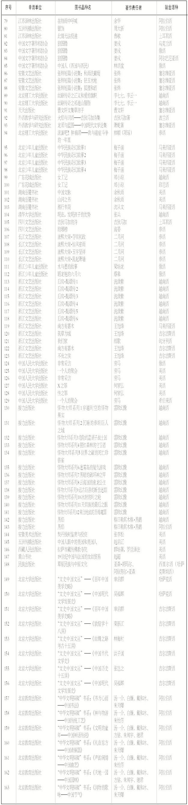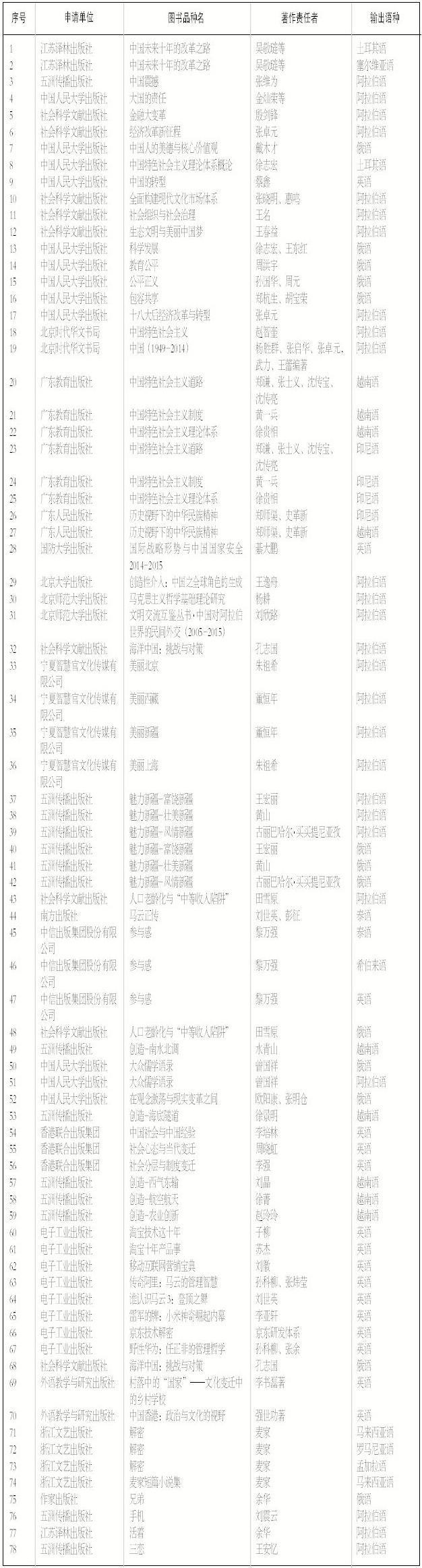 2015年“丝路书香工程”增补重点翻译资助项目公示名单