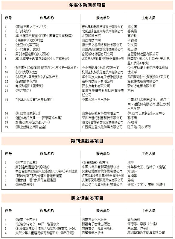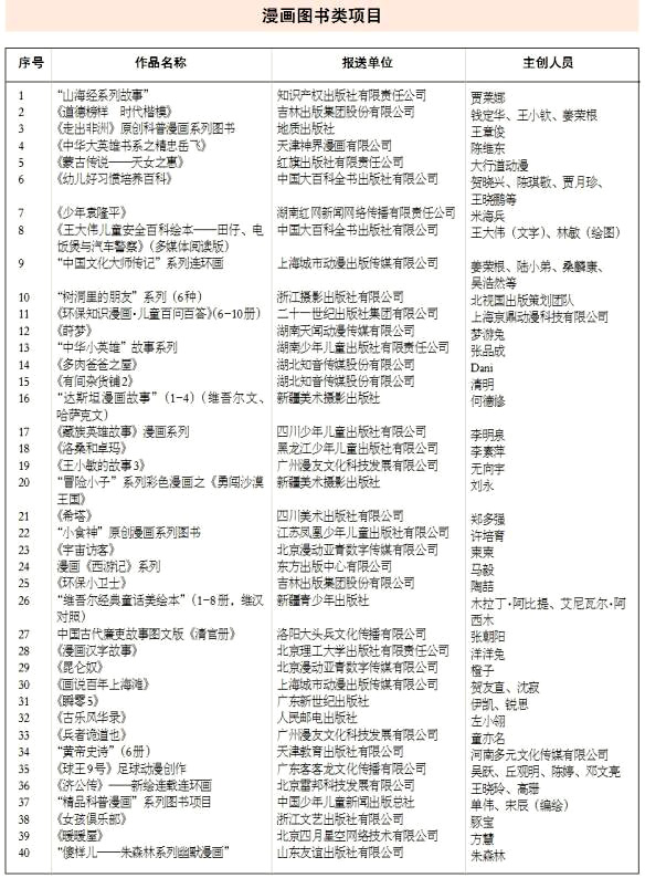 中国原创动漫出版扶持计划入选项目公示目录 - 出版新闻 - 中国高校教材图书网