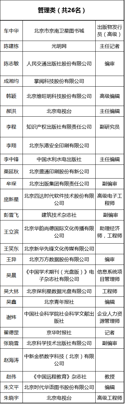 一、经北京市新闻出版广电局领军人才评审委员会评选产生的领军人才名单(共86名,排名不分先后):