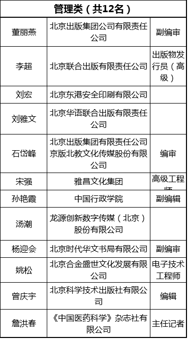 编者按:2013-2015年度北京市新闻出版广电行业领军人才遴选结果公示了,公示期为2016年11月29日—12月5日,看看出版人有哪些入围!