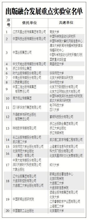 日前,国家新闻出版广电总局正式公布20家出版融合发展重点实验室依托单位和共建单位名单。这是总局贯彻落实中央关于推动媒体融合发展部署和《关于推动传统出版和新兴出版融合发展的指导意见》的重要举措。