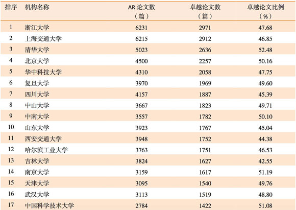 如果按照论文的全部作者单位进行统计,前十位分别是上海交通大学、浙江大学、清华大学、北京大学、复旦大学、中山大学、华中科技大学、四川大学、山东大学和西安交通大学。