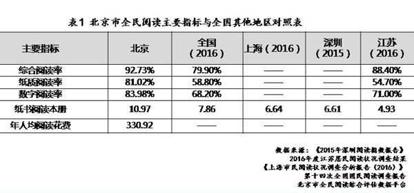 第一,北京市综合阅读率持续提升,居于全国领先水平。