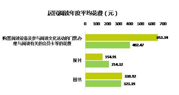 北京市居民购置阅读设备、参与阅读文化活动的门票或办理与阅读有关的会员卡的人均年消费653.34元,较上一年度增加250.87元。64.77%的北京居民在实体店购买过图书,较上一年度提升了2.91个百分点。