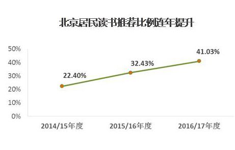 北京市居民综合阅读率92.73%,2013年至2017年连续4年间,提升了2.66个百分点,高于全国平均水平12.69个百分点;纸质阅读率81.02%,高于全国平均水平58.80%;数字阅读率83.98%,高于全国平均水平68.20%。