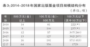 国家出版基金设立以来,坚持鼓励原创,不断加强政策引导,严格评审要求,引导和鼓励中小型原创项目的出版,取得了良好成效,原创类项目比重进一步提高。从表3可以发现,近5年来,大型集成整理类项目逐渐减少,中小型原创项目比例不断增加,资助项目规模结构进一步优化。在基金总规模没有较大增长的前提下,中小型项目数量的增长较为明显。50万元以下的项目增速也非常显著,2016年有240个50万元以下的项目,2018年这一数字攀升至453个,增幅达到88.7%。