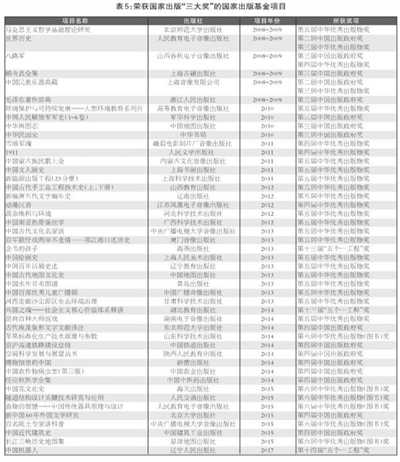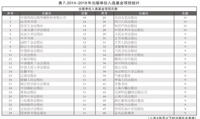 2018年,科学出版社、人民交通出版社、黄山书社、电子工业出版社、河北人民出版社入选国家出版基金项目数增长较多。(见表7)