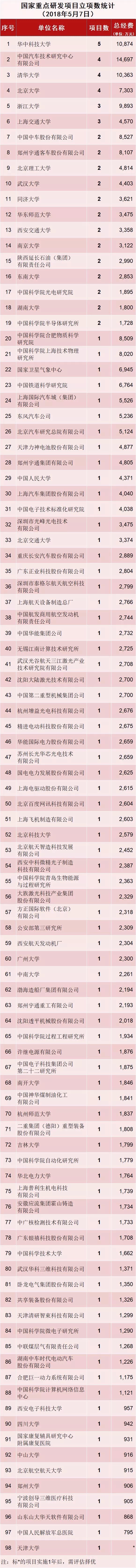 以下为国家重点研发计划项目统计和详细名单: