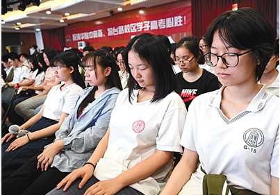 昨日,清华附中奥森、将台路校区邀请催眠专家莫洪波来到校园,给高三学子们减压。 图/视觉中国