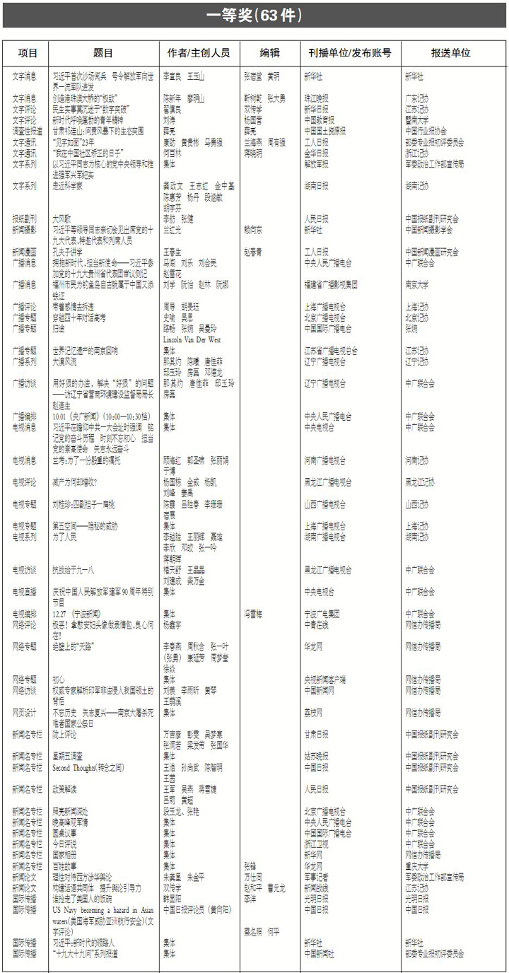 第二十八届中国新闻奖拟评选结果目录