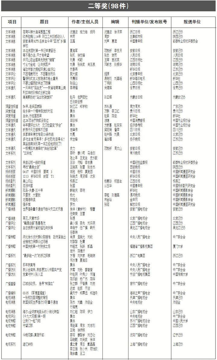 第二十八届中国新闻奖、第十五届长江韬奋奖评选结果9月13日起进行公示。