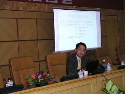 刘汉文总经理在台湾有10多年的大学教科书运作经验。他从“台湾大专教科书市场概述”、“台湾大专市场教科书市场观察”、“台湾大专教科书的营运模式”、“麦格劳-希尔台湾策略”等几个方面介绍了台湾大学教科书市场的发展过程、营销现状等情况。