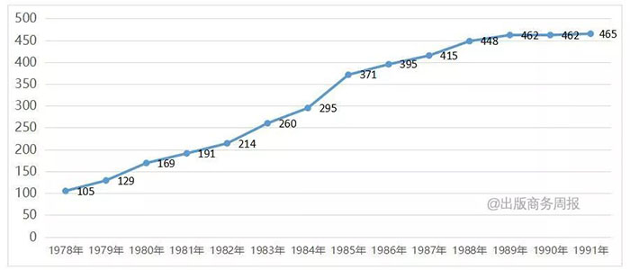 图1 恢复发展时期(1978-1991)图书出版机构数量变化趋势图