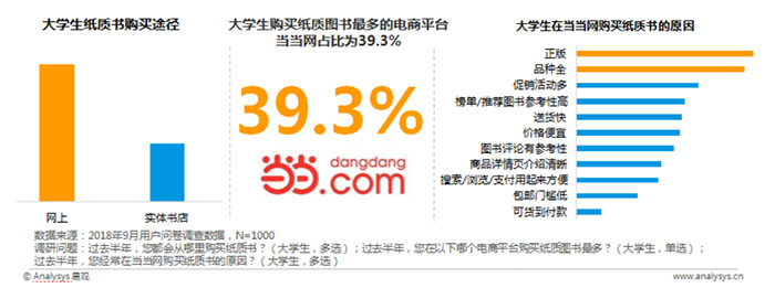 但在对家长调研的过程中发现,随着年纪渐长,从高中阶段开始,在大量教辅书面前学生出现购买分歧时许多孩子会自己做决策,用自己的账号在网上下单购书的占比也越来越高。这一结论也得到了高中生的认同:有93%的高中学生表示会在分歧下自己做决定,66.7%人将“书的内容是否适合自己”作为考虑因素。这反映出高中生更有自己的主见,知道什么类型的教辅书更适合自己。在购书方式上,大学生自行选择在网上购书的占比高达89.8%,远超实体书店;有39.3%的学生在当当网下单购买,远高于其他电商平台,正版和品种多是他们选择当当的主要原因。