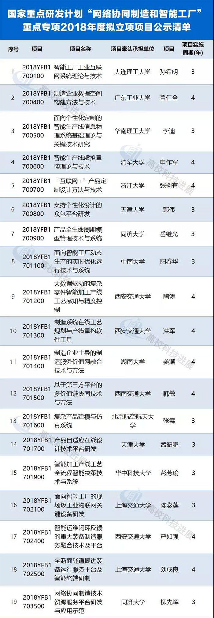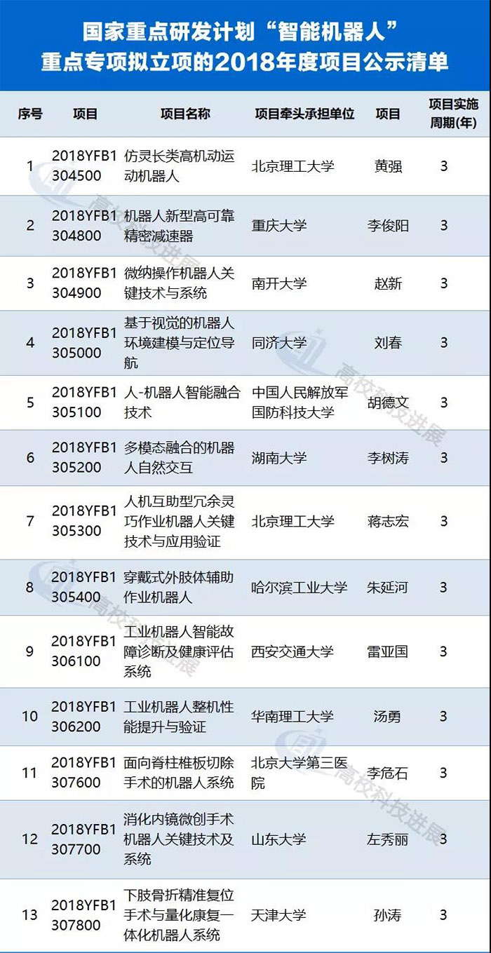 近日,科技部高技术中心公示了“网络协同制造与智能工厂”和“智能机器人”两个“智能”领域专项,有21所高校的32个项目获立项。