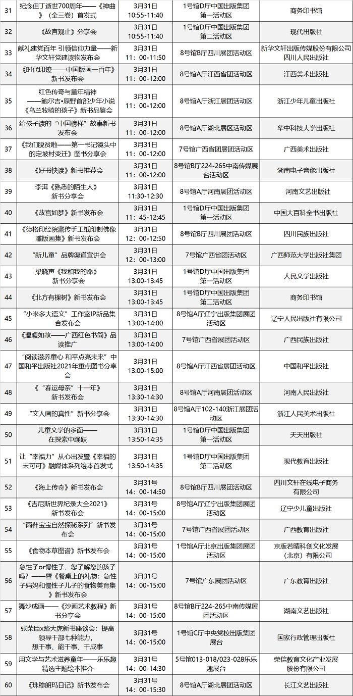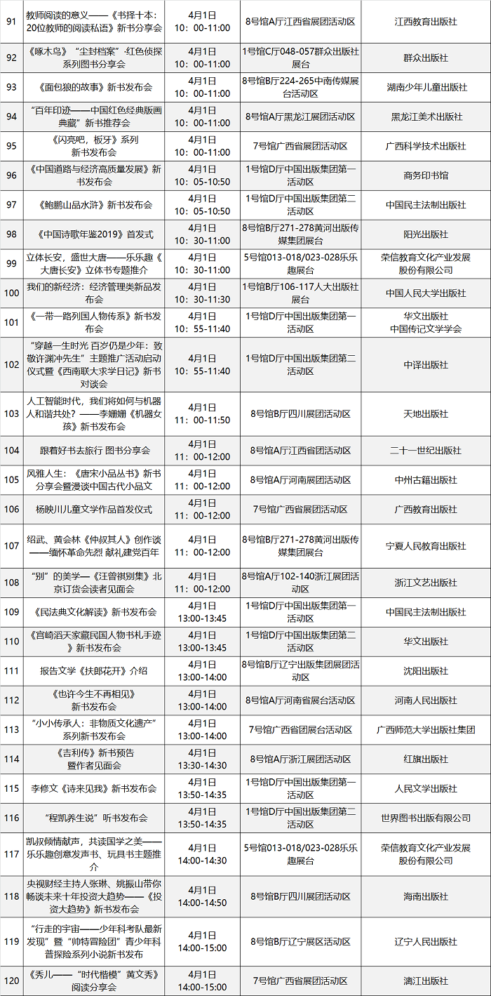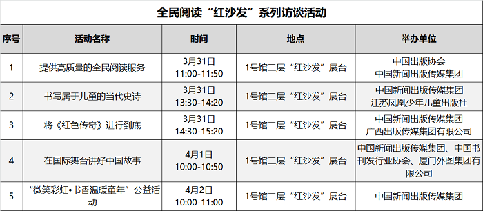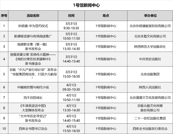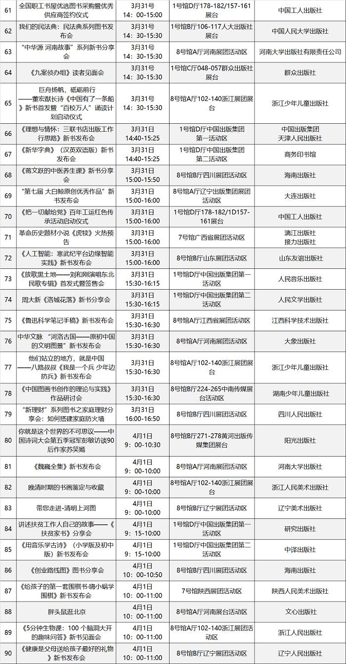 本届图书订货会精心策划场内场外丰富多彩的文化活动200余场,汇总表如下: