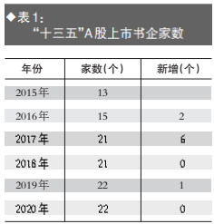 最近的5年,A股出版发行业上市公司的阵容从“十二五”期末的13家,扩充到了“十三五”期末的22家,5年间增加了9家。