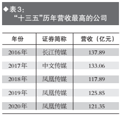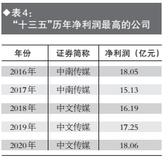 从营业收入来看,5年来营收超过100亿元的公司数量分别为4家、4家、3家、3家、3家,数量上看后3年比前2年减少了1家。5年来营收进入“百亿”阵营的有中文传媒、凤凰传媒、中南传媒、长江传媒4家,其中中文传媒和凤凰传媒每年都在,中南传媒2018年不在,长江传媒在2019年和2020年不在。