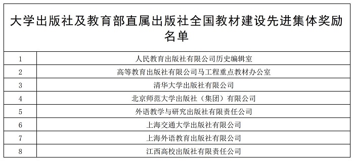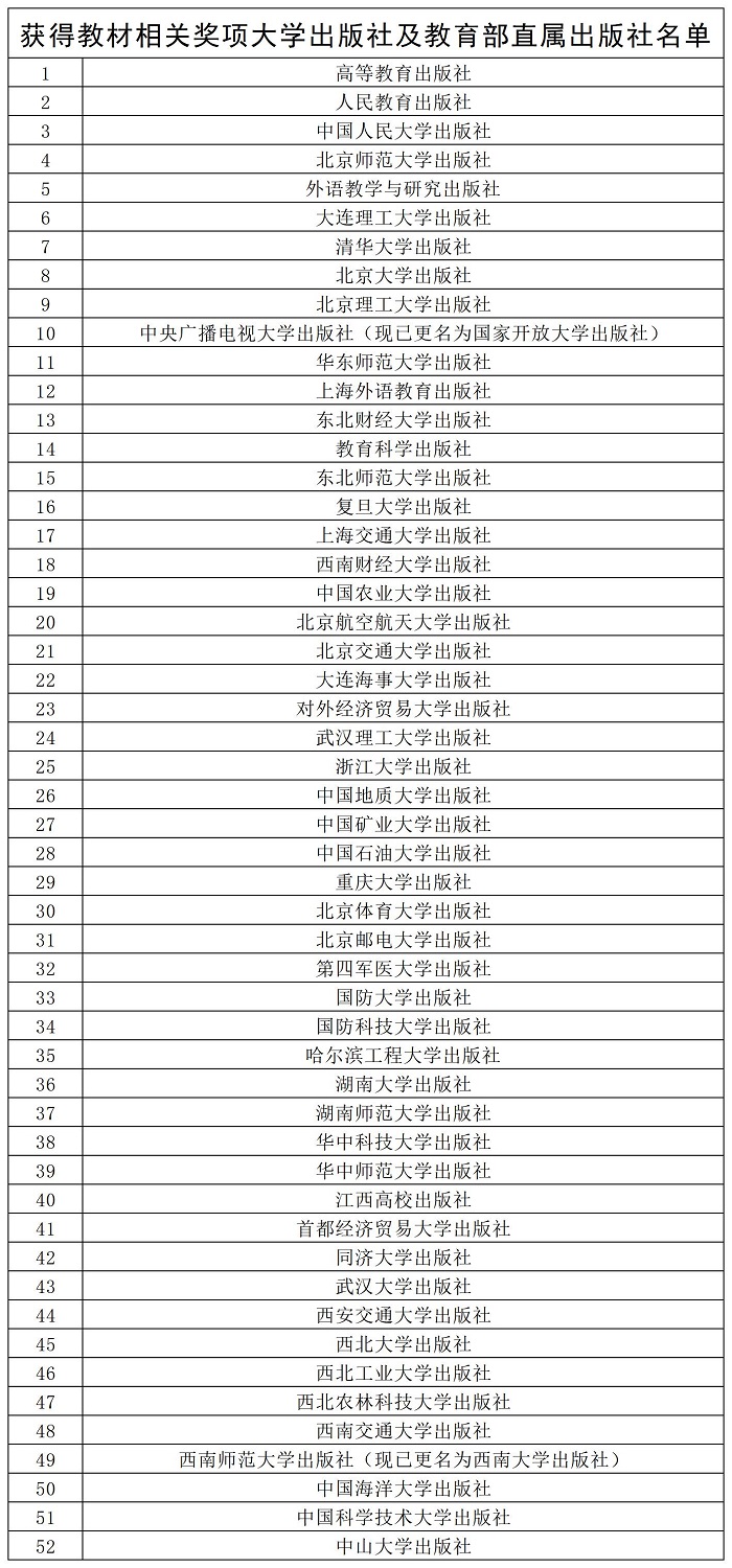 [获得教材相关奖项大学出版社及教育部直属出版社名单 点击下载]