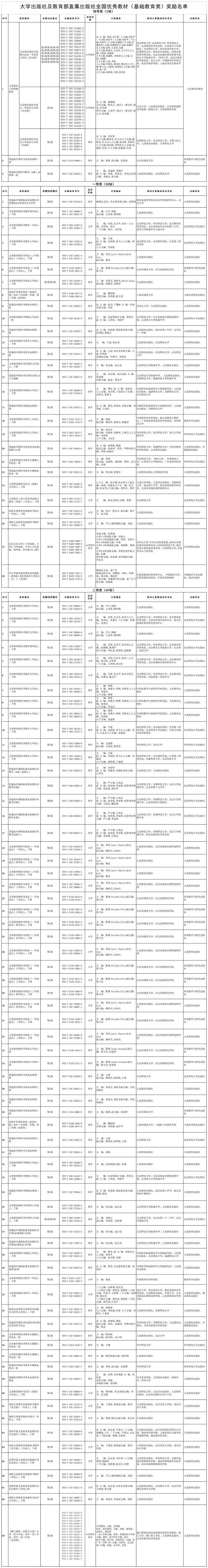 [大学出版社全国优秀教材(基础教育类)奖励名单 点击下载]