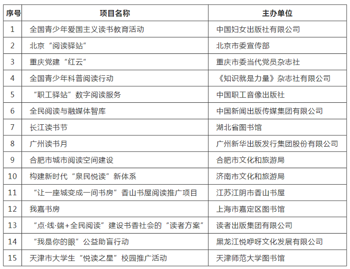 2021年全民阅读优秀项目推介工作入选名单