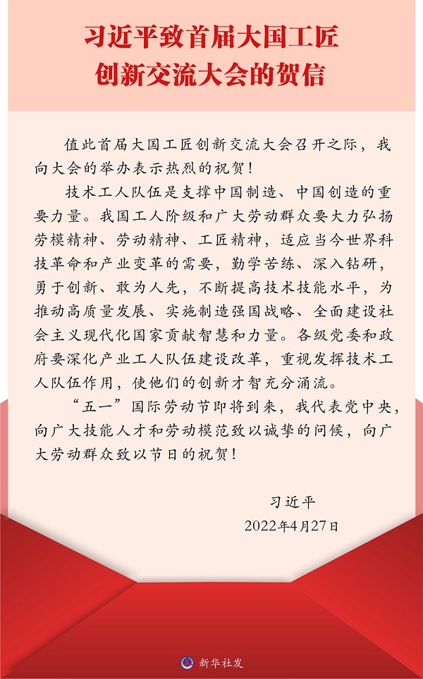 习近平致信祝贺首届大国工匠创新交流大会举办强调