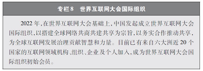 通过世界互联网大会搭建网络法治交流平台。自2014年起,中国连续九年举办世界互联网大会,邀请各国政府、国际组织、互联网企业、智库、行业协会、技术社群等各界代表参加。大会组委会发布《携手构建网络空间命运共同体》概念文件,提出“尊重网络主权,《联合国宪章》确立的主权平等原则是当代国际关系的基本准则,同样适用于网络空间”。发布《携手构建网络空间命运共同体行动倡议》,提出开展数据安全和个人信息保护及相关规则、标准的国际交流合作,推动符合《联合国宪章》宗旨的个人信息保护规则标准国际互认。开展未成年人保护立法经验交流,打击针对未成年人的网络犯罪和网络欺凌,进一步完善打击网络犯罪与网络恐怖主义的机制建设。支持并积极参与联合国打击网络犯罪国际公约谈判,有效协调各国立法和实践,合力应对网络犯罪和网络恐怖主义威胁。