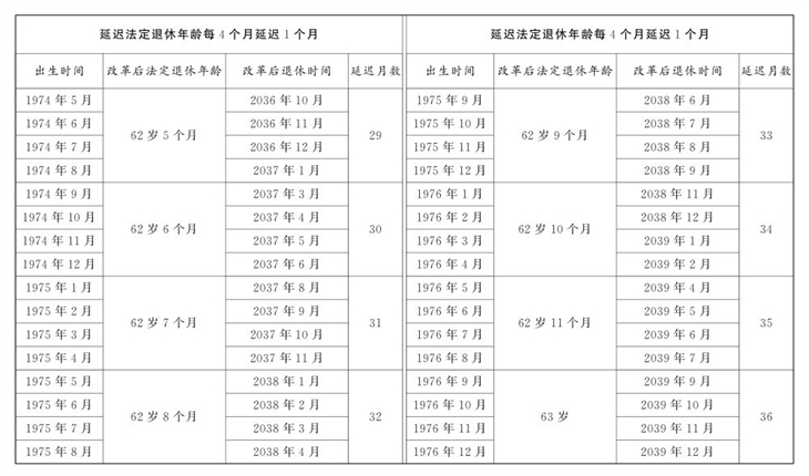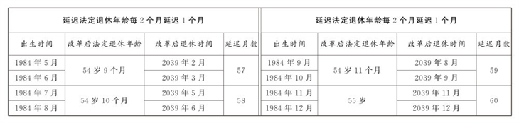 1.男职工延迟法定退休年龄对照表