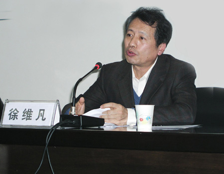 图为:教育部社会科学研究与思想政治工作司副司长徐维凡讲话