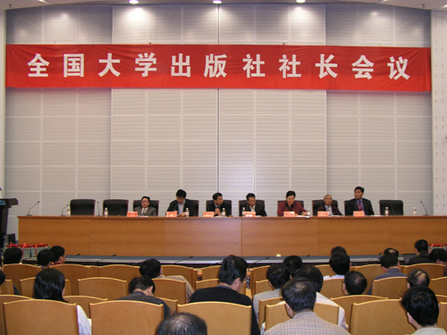 2006年11月3日下午,中国大学出版社协会在青岛国际会展中心召开了大学出版社社长会议。参加会议的主要领导有中宣部出版局李达,教育部社科司副司长徐维凡,教育部社科司出版管理处处长魏小波,大学版协理事长李家强,大学版协常务理事长彭松建,大学版协副理事长张天蔚,大学版协秘书长刘军。会议由大学版协理事长李家强主持。