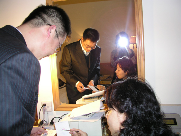 会务组会计正为参会出版社代表结账