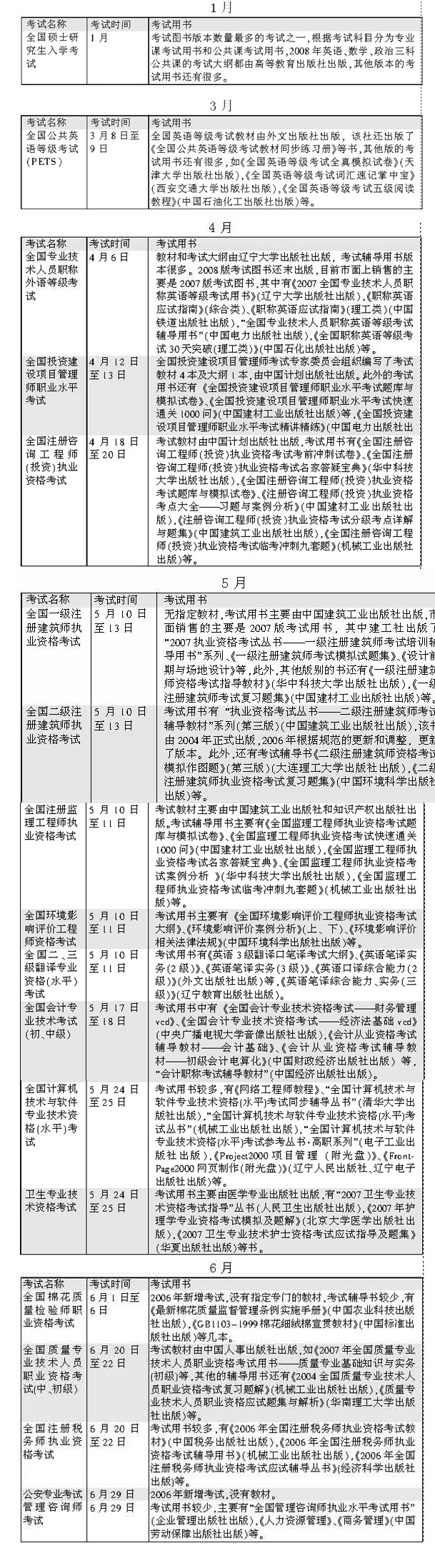 2008年上半年考试日历(一) - 教育新闻 - 中国高校教材图书网