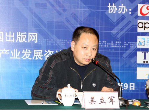 音像电子和网络出版管理司副处长吴立军代表王国庆司长讲话,他说这次会议非常及时和必要,会议就对网络出版的技术研发起到了非常好的推动作用。他还介绍到,音像司明年要大力推动传统的出版方式向现代网络出版的转型,加强网络出版人才培养和岗位设计。