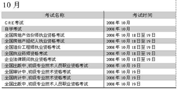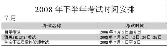 2008年下半年考试时间安排 - 教育新闻 - 中国高校教材图书网