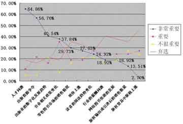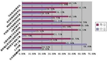 部分参与调查的中外出版人在填写问卷的同时,也主动谈到了选择这些选项的原因——在当前转企改制关口,书业相关政策的变化对书业发展有着相当重要的影响,改革开放30年来中国出版业之所以能取得如此成绩,很大程度上取决于政策的支持;而外方关注“书业相关政策变化”也是为了更好地进军中国书业,这早在中国加入WTO时便可见端倪。