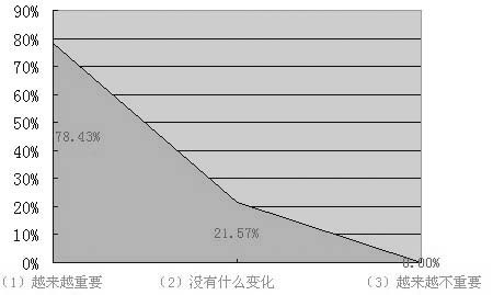 在参与调查的51位企业管理人当中,78.33%的人认为“读书越来越重要”,认为“没有什么变化”的占21.57%,没有一个人认为“阅读越来越不重要”。