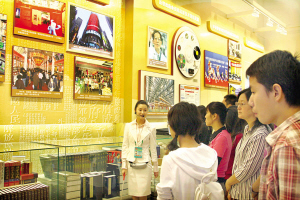 9月19日,“辉煌60年——中华人民共和国成立60周年成就展”在北京展览馆开幕。这是工作人员在向观众介绍我国新闻出版业发展情况。董岩 摄