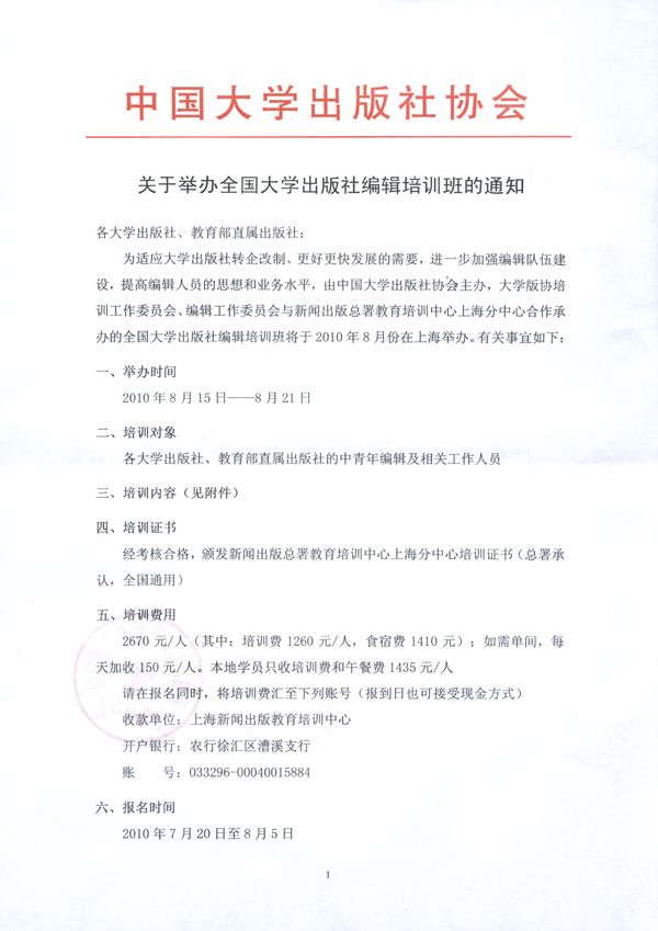 关于举办全国大学出版社编辑培训班的通知 - 中国大学出版社协会 - 中国高校教材图书网