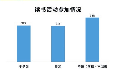 没有阅读氛围也成为妨碍读者进行阅读的重要因素。图书馆的公共服务体系在全民阅读推广中尤为需要,它能提供的不仅仅是图书的借阅,更能够为读者创造良好的阅读环境和阅读氛围。各类读书活动也为读者提供了良好的阅读交流环境,但目前读书活动的参与组织情况并不尽如人意。参与调查的读者中有31%表示参加过所在单位(学校)组织的读书活动,这一比例虽然较去年同期有所上升,但有38%的读者更表示单位或学校则根本不会组织此类活动,可见读书活动的推广仍然有待提升。(见图12)