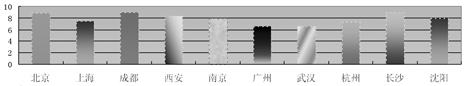 通过对萨缪尔森理论的延伸,结合心理学、经济学与社会学相关研究范式,我们在调研问卷中为“编辑出版从业者”做了一个简单的“心理测评条”,即“从压力到幸福”的逐级过渡,“1”代表“非常有压力,难以为继”,而“10”代表没有压力,很幸福,被调研者根据自己的切身感受,在十个数字中进行选择,数字之间的级差由被调研者自己来把握。在不同的省市,我们得出了不同的平均结果。(见图4)