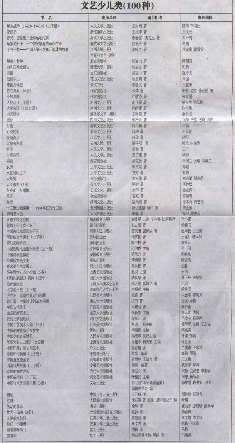 第三届“三个一百”原创图书出版工程入选书目公示 (2011.12.01 15:37:34)