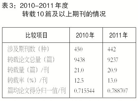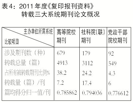 2011年度《复印报刊资料》转载学术论文指数研究报告