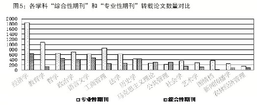 专业性期刊和综合性期刊的转载情况,在不同的学科中也呈现出各自的特点。2011年度《复印报刊资料》分学科期刊排名数据显示,在法学、新闻传播学、农林经济管理、图情档等学科中,排名靠前的期刊绝大多数为专业性期刊,说明这些研究内容较为独立、与其他学科交叉较少的学科适合于专业性期刊刊载。而在哲学、历史学、社会学、马克思主义理论等研究内容与其他学科交叉较多的学科中,排名靠前的期刊中综合性期刊也占有一定比例,说明相比之下,这些学科的研究内容与其他学科交叉较多,其成果也适于综合性期刊刊载。
