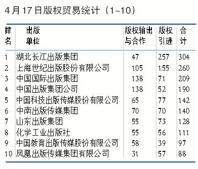 4月17日版权贸易统计(1~10)