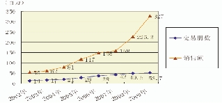说明:数据截止日期为2008年12月31日。数据来源为书生读吧历年的业务统计,CNNIC、GOOGLE、百度、新浪的有关数据,以及书生读吧对有关电子图书市场、网站等进行的调查。