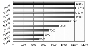 《2008~2009年中国电子图书发展趋势报告》预测的2009年电子图书数字图书馆市场产值为12300万元,实际为12250万元,与2008年持平,表明数字图书馆市场已经严重饱和,预计2010年数字图书馆市场产值产值为12100万元,可能会因为竞争激烈价格下滑有小幅衰退。(见图6)